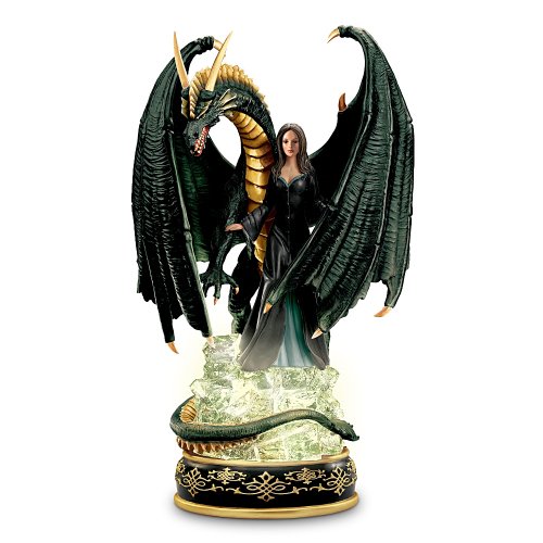 Mesmerizing Dragon Figurine Invites You to Fall Under the Serpent's Spell! Exclusive Fully Sculpted Collectible Lights Up! - Enter the dark and exciting world of a dangerous duo with this awe-inspiring collectible dragon figurine, available only from The Bradford Exchange, This dramatic dragon art collectible illuminates the night with a sparkling crystalline base that lights up. Just flip the switch to activate pulsing LED lights that offer a spellbinding glow!You'll be dazzled by the power and mystery of this fierce dragon and his beautiful female companion. Each is fully sculpted with impressive hand-painted details. The dragon shimmers with iridescent scales and sharp metallic talons, while the black-clad enchantress stands shielded protectively by the dragon's large, fierce wings. You won't want to miss this limited edition addition to your collection. Magical demand is expected - order now!